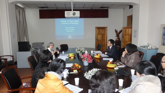 在吉林大学举办美国肯塔基大学活动周之际,葡京娱乐-葡京线上娱乐平台 邀请肯塔基大学副教务长Susan Karvalhol来葡京娱乐 座谈,洽谈两校合作办学相关事宜。葡京娱乐 主管外事工作副院长、博士生导师刘晓冬教授主持会议,葡京娱乐 相关科室主任和青年教师参加座谈。在友好气氛中,双方就合作办学专业、模式、学生管理、学费及收取、课程互认、教师交流等多项事宜达成共识,并约定在5月份的第二次会谈中签署相关协议,葡京娱乐 有望成为吉林大学与肯塔基大学之间葡京娱乐 合作的第一个战略伙伴。