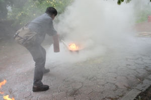 行政副院长刘汉君主持。长春市金盾消防知识宣传中心主任王海洋和大家共同学习了《机关、团体、企业、事业单位消防安全管理规定》,并用鲜活的实例讲解了安全防火知识,会后进行了灭火实战演练,使全院职工受益匪浅。刘汉君副院长要求大家要严格执行一岗双责制度、值班制度、监督检查制度和信息反馈制度,加强用电和化学药品的管理,并要求全院教职工和学生,按照学校校园安全专项整治工作的要求,有效预防和遏制安全事故发生,警钟长鸣。
