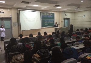 讲座开始前,疾病预防控制中心的老师们在志愿者的帮助下为同学们分发艾滋病宣传手册,讲解艾滋病相关小常识。活动开始,主持人带领大家观看了抗艾励志短片。之后,一位艾滋病患者为大家作了真挚动人的演讲。活动期间主持人进行了针对艾滋病小常识的有奖问答。现场气氛极为活跃,无论是答题还是提问,同学们都积极踊跃地举手参与,老师也热情地为同学们答疑解惑。讲座接近尾声时,一些同学与艾滋病患者握手、拥抱,讲座活动圆满落幕。活动结束之后,吉林大学学生红十字会的工作人员还受到了吉大电视台和吉大新闻网的采访,随后全体人员合影留念。