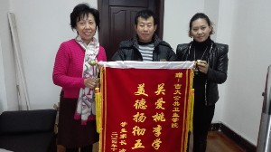 老师心系学生,家长感恩回馈。11月28日上午十点四十分,冷艳梅同学的父亲满怀感激之情将写着“关爱桃李学子,美德扬彻五洲”的锦旗送到葡京娱乐