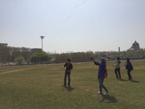 上午9点,2013级预防医学一班的同学们带着自己的风筝一起来到新民文化广场,并以放风筝的时间长短为标准开始了比赛。由于参加比赛的同学较多,比赛以分组形式进行。同学们每2人组成一队,顺着风向将自己的风筝放飞。样式各异的风筝扶摇直上,形成了一道亮丽的风景,吸引了不少路人的眼球。