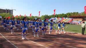 的方队入场时,蓝色和白色的运动装扮洋溢着热烈的青春气息,吸引了在场领导老师和观众的注意。伴随着观众席澎湃人心的鼓声和此起彼伏的欢呼声,队员们英姿飒爽,喊着嘹亮的口号,迈着矫健的步伐,扬起自信的脸庞,整齐划一地走过主席台,精神饱满地接受全校师生的检阅。