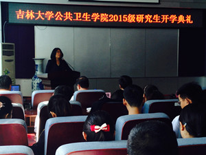 的基本情况、师资力量以及专业建设等,同时祝福新生在新的环境下迎接挑战、实现理想。随后,信息技术教研室主任牟冬梅教授代表教师发言,勉励同学们无论在学业还是生活中都要学会坚持,拼搏奋进。2013级博士研究生刘特同学和2015级硕士研究生朱祥同学分别作为老生和新生代表发言,表达了同学们会脚踏实地,努力学习,不辜负老师的殷切希望的心声。典礼在慷慨激昂的吉林大学校歌中圆满结束。