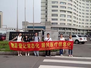院长李娟老师、医药信息系主任王伟老师和教科研办公室李鹏老师出席了此次会议。会议中,王振宇主任向同学们介绍了卫生局信息统计中心的工作任务,说明了医疗信息化和推广居民健康卡的重要性,并给同学们布置了设计调查表和统计表的任务。8月19日上午9时,由王振宇主任主持的调研试调协调会在长春市卫生局统计信息中心四楼会议室举行。此次会议确立了调研活动的总方案和注意事项,选取了吉林省肿瘤医院、吉林大学第二医院和兰家镇卫生院等10所医疗机构作为调研点。8月20日,同学们分为三组,在统计信息中心的老师的带领下,对上述10所医疗机构进行了以问卷的形式进行的调研。整个调研活动顺利开展。