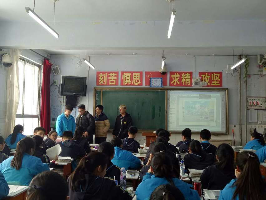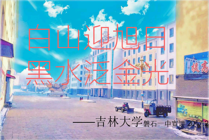 等同学回到他们的母校——磐石第一中学——进行宣讲活动,宣传吉林大学的魅力与实力,鼓励高中的同学们奋勇拼搏并积极报考吉林大学。