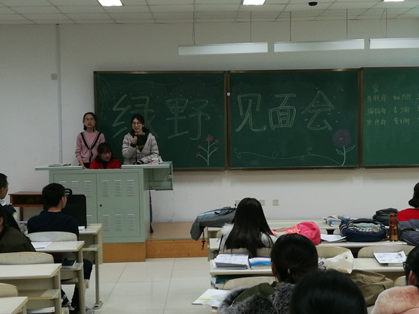 绿野协会于3月15日晚6点在吉林大学前卫校区李四光楼102教室举行了见面会。绿野社团会长、副会长及各部部长副部以及2016级的新成员共同参与了此次见面会。