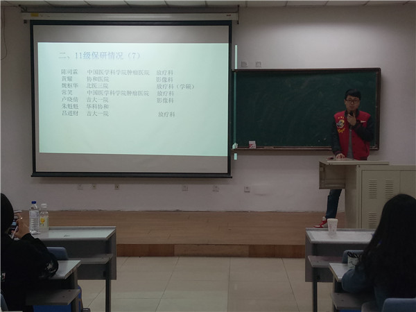 特地邀请2012级应届毕业生为学弟、学妹们进行了学习方法和就业经验分享,大会在新民校区第二教学楼2101教室进行,主讲同学覆盖预防医学、放射医学和医药信息管理三个专业,葡京娱乐