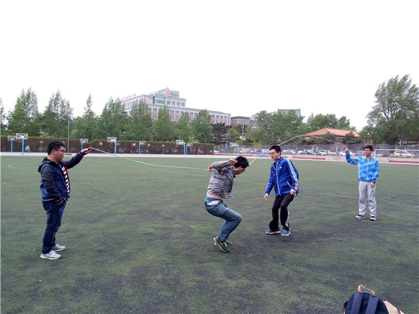 的男生们个个表现得非常精彩,打破了女生们一直以来保持的比赛记录。轻灵、优美的毽球,忽上忽下,时急时缓,在空中划出一道道让人目不暇接的完美弧线,充分展现出了我院学子的青春风采。随后的长绳比赛中,选手们全神贯注、默契配合,许多班级一边喊着口号,一边整齐划一地完成动作,将班级凝聚力和团队向心力尽展。最后一项短绳比赛,“啪,啪,啪,啪……”,干净而利落的砸地声响让人回忆起了青葱的少年,仿佛时间一下子回溯到了无忧无虑的童年。竞技活动中,同学们的比赛热情丝毫没有受到恶劣天气的影响,活力满满,激情四射,使得“春季三项”赛事圆满落幕。