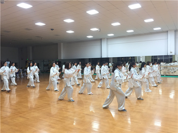 太极拳表演方阵全体成员于吉林大学新民校区体育馆进行了预赛前的最后一次集体训练,力保在运动会上表现出色、发挥完美。