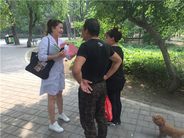 活动分为两个流程。首先,党支部参与人员向公园散步人群发放有关糖尿病和小儿腹泻的传单,并向行人细心讲解了有关糖尿病的症状、类型、防治和治疗方法,希望在场的市民可以通过控制总热量的摄入、合理配餐、高纤饮食等方法预防高血压的发生。同时,参与活动的相关同学也希望市民可以减轻对糖尿病的畏惧心理,通过对饮食和生活习惯的调理,预防高血压及其并发病的发生。对于小儿腹泻的问题在场市民也表现得犹为关心,并提出了很多实际的疑惑,我院党支部成员对这些问题均作了详细准确的回答并对如何预防给予了相应的建议和意见。活动最后,所有参与人员合影留念。