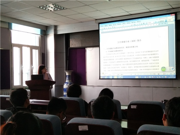 对学生的培养方式及原则为本,分别从预防医学、卫生检验角度,为同学们讲解了以后的学习重点和就业前景。她指出,随着我国公共卫生事业的快速发展,社会对卫生检验人才的需求与日俱增。卫生检验是保护自然、预防控制疾病、保障人类健康的重要环节,是卫生防疫工作的重要组成部分,是卫生防疫机构的耳目,是执行卫生法规的依据,是研究预防医学的基础。而预防医学专业,毕业后可获得医学学位,出口宽,可以攻读公卫医师,十分有利于同学们的就业和考研。