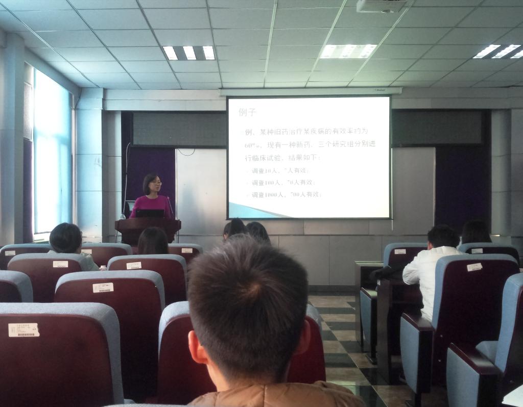 三楼报告厅如期举行。讲座内容以概率统计在医学方面中的应用为主,并辅以之前结项的大创项目实例以进行详细的介绍讲解。