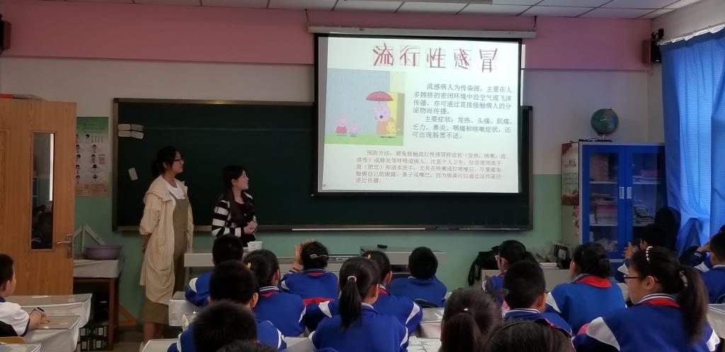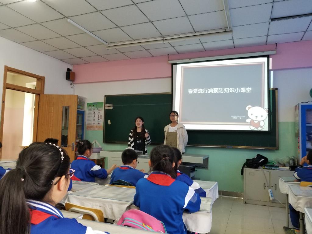 团委志工部组织的“预防疾病知识进小学”活动走进了吉林大学附属中学小学部五年一班,为孩子们带来了精心准备的春夏流行病预防知识小课堂。