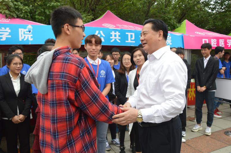 虽然迎新期间阴雨绵绵,但未能阻挡校长亲临现场的关心与慰问,未能阻挡葡京娱乐