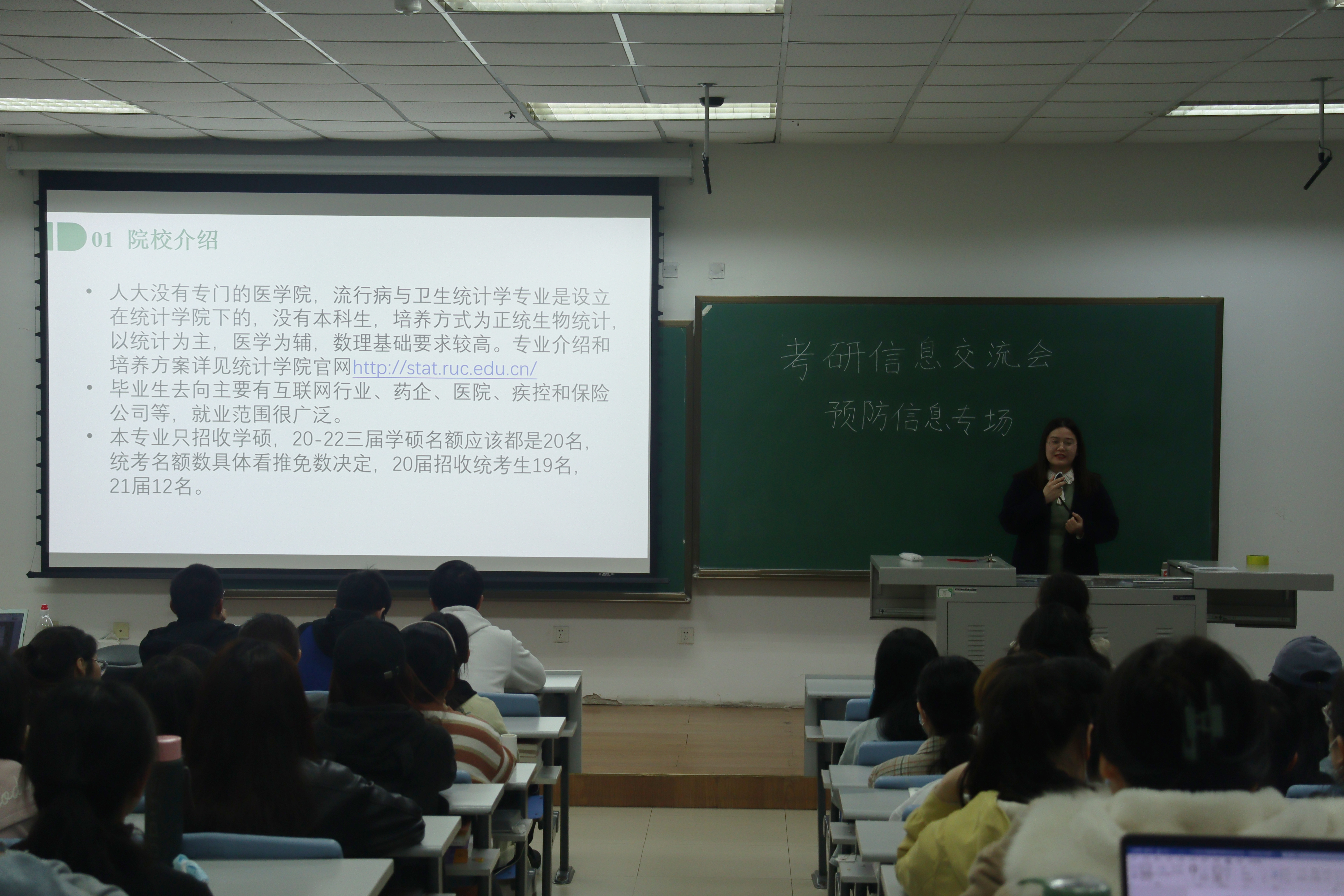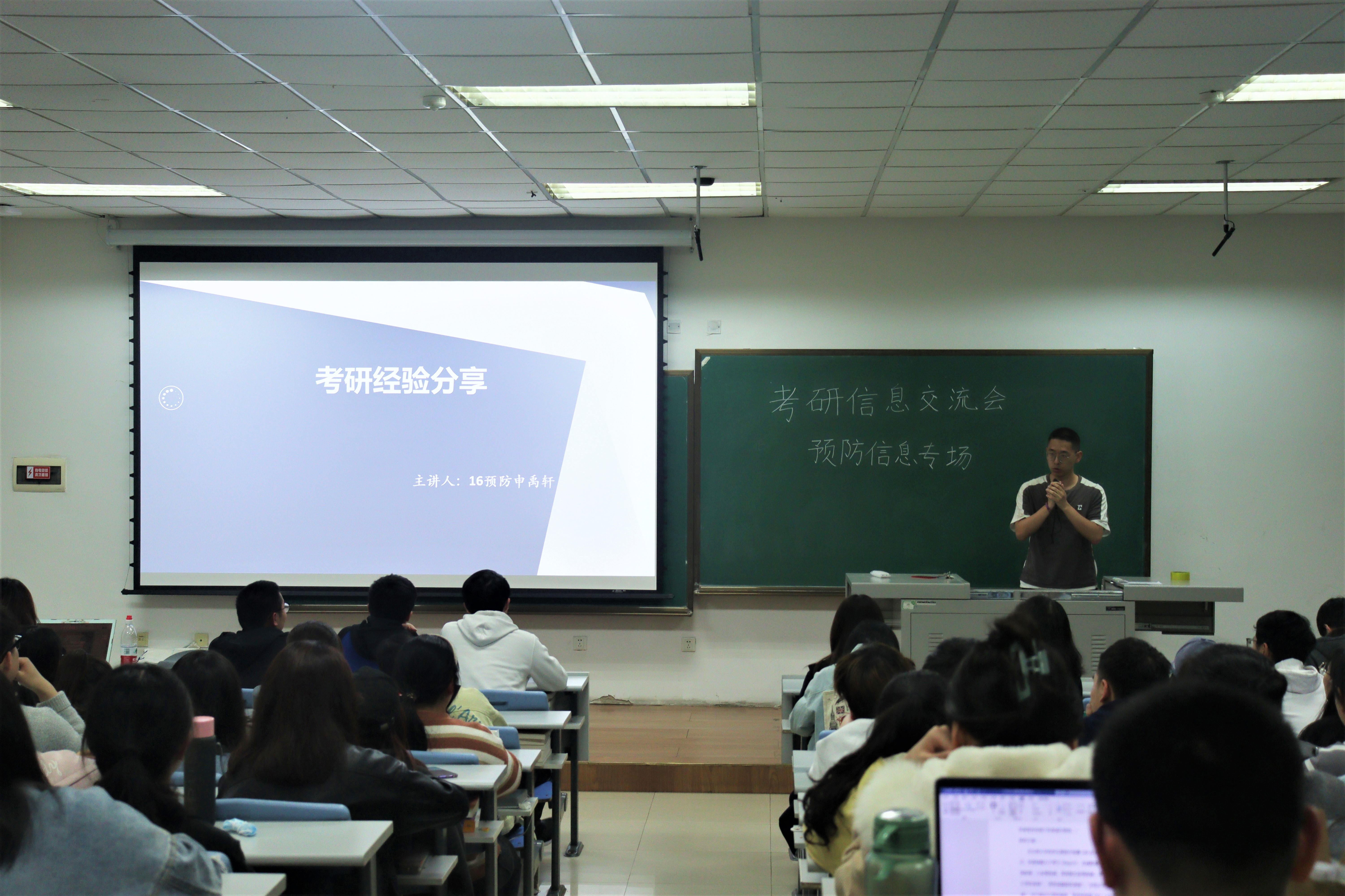In order to help 2017 students to understand the situation of the postgraduate examination, master the review methods and build up confidence, the Public Health College held an information exchange meeting for preventive medicine and medical information in classroom 2103, the second teaching building of Xinmin campus on the evening of April 25. The meeting invited students who have achieved excellent results in the course of postgraduate examination in 2020 to share their experiences, Students who are currently studying in 2017 and other students interested in the class participated in the sharing meeting.