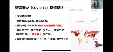 In the morning of March 21st, the COVID-19 prevention and control work in China was a forenoon victory. On the eve of the resumption of the University's resumption, the school of public administration of the school of public health held a "escort and resumption of classes, guarding the health and safety - COVID-19 prevention and control knowledge Seminar". A total of 2200 teachers, postgraduates and undergraduates from two colleges were organized. The lecture was conducted in the form of "nailing" live network video, and was delivered by associate professor Zhen Qing of the Department of epidemiology and health statistics, School of public health.