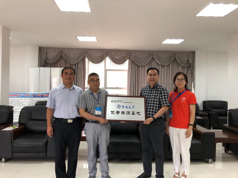 On the morning of June 25, vice president Yu Xihe led the working group to award the "excellent student source base" in Enshi Tujia and Miao Autonomous Prefecture high school, and gave guidance to the candidates on the spot. On the afternoon of June 26, the working group held the awarding ceremony of "Jilin University Xiangyang No.1 high quality student source base" in Xiangyang No.1 middle school and held an enrollment promotion forum to introduce the discipline advantages and school running characteristics of Jilin University in detail. On the afternoon of June 27, with the assistance of Geng Changgang, Dean of educational administration of Danjiangkou No.1 middle school, the working group organized 600-615 students to carry out discussion and exchange to further publicize the advantageous majors and development prospects of Jilin University and arouse students' interest in applying for the examination.