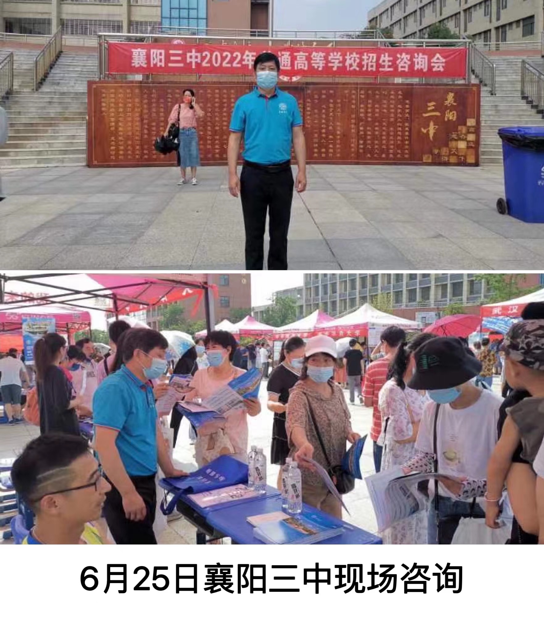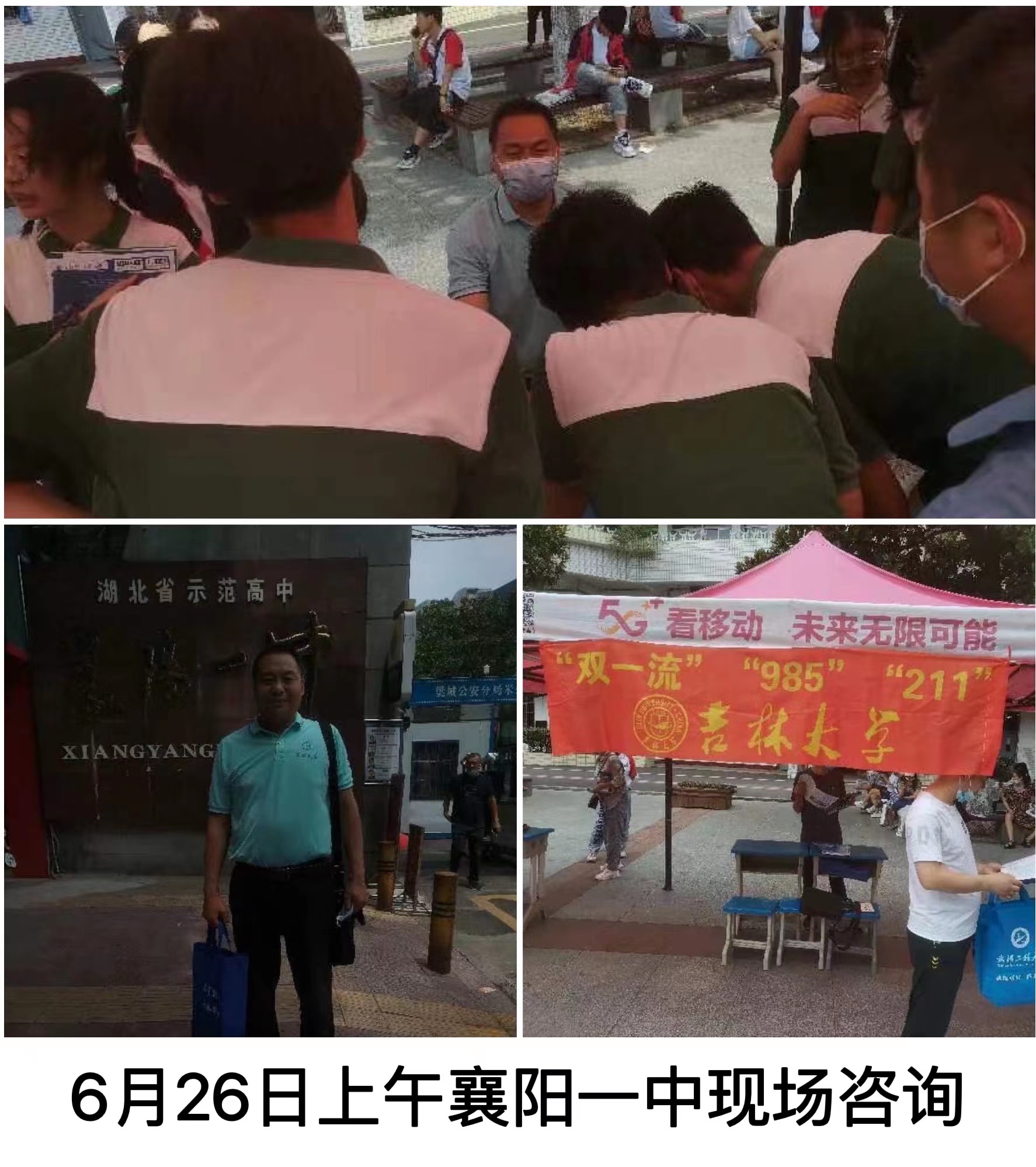 After online enrollment promotion through 360 Education Online, Gaozhaotong, Gaokaobang and other platforms, in order to better provide high-quality and valuable guidance for candidates to apply for the examination, the School of Public Health of Jilin University rushed to Hubei Province to carry out on-site enrollment consultation activities and the awarding of excellent student base during the online enrollment period after the release of the results of the college entrance examination in Hubei Province from June 25 to June 30, and successively in Xiangyang No. 4 Middle School, Xiangyang No. 5 Middle School, Hubei Province Several schools, including Xiangyang No.1 Middle School, Xiangyang No.3 Middle School, Daye No.1 Middle School, Suizhou No.1 Middle School, Hong'an No.1 Middle School, Macheng No.1 Middle School, Lichuan No.1 Middle School, Enshi High School and Badong No.1 Middle School, have held high-quality enrollment consultation and enrollment guidance. The college of public health in Hubei was divided into two publicity groups at the same time, led by Professor Kou Changgui, the vice president of teaching of the college of public health, Mr. Liu Jinchao, the vice secretary and vice president of the party committee of the college of public health, and the enrollment publicity team with many years of experience in enrollment publicity, such as Mr. Gan Zhenwei, Mr. Liu Guoliang, Mr. Liu Huafeng, and Mr. Li Zhuolin.