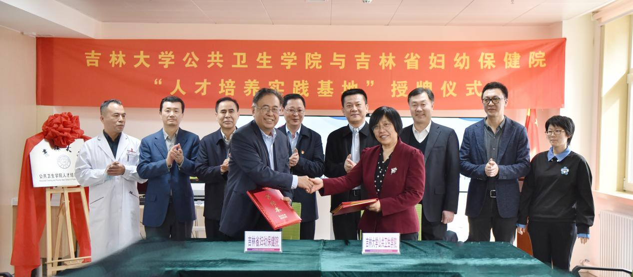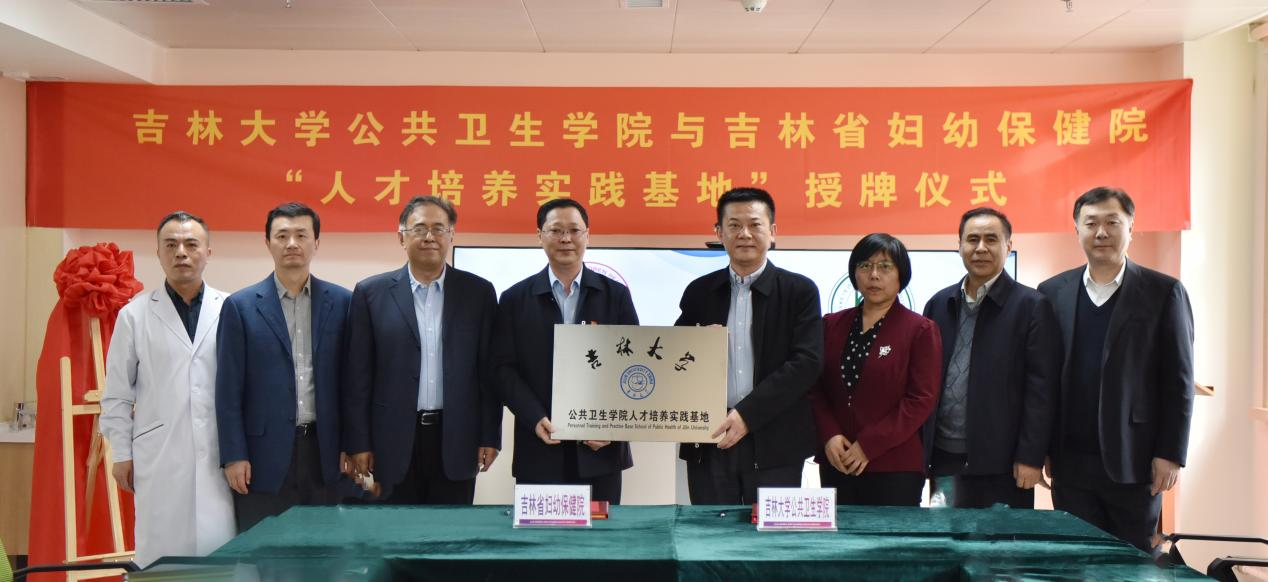In order to strengthen and standardize the practical teaching work of the college, cultivate students' practical abilities and innovative awareness, and comprehensively improve the quality of teaching and talent cultivation, on the afternoon of March 21st, the signing and awarding ceremony of the talent cultivation practice base jointly built by the School of Public Health of Jilin University and Jilin Maternal and Child Health Hospital was successfully held at Jilin Maternal and Child Health Hospital. Attending this ceremony were Shen Wensheng, the Secretary of the Party Committee of Jilin Maternal and Child Health Hospital, Dong Xiaobin, the Dean, and Sun Zhiyong, the Vice Dean. Zhao Guoli, the Secretary of the Party Committee of the School of Public Health, Liu Yawen, the Dean, Kou Changgui, the Vice Dean, Yu Xihe, the Graduate Commissioner, and relevant department heads from both parties. The ceremony was presided over by Dong Xiaobin, the director of the Maternal and Child Health Hospital.